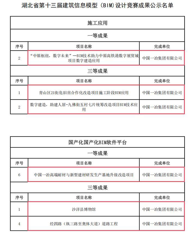 經(jīng)過初賽、決賽兩輪角逐,公司選送的《“中原樞紐、數(shù)字未來”-BIM技術(shù)助力中原高鐵港數(shù)字展貿(mào)城項目數(shù)字建造應(yīng)用》獲評施工應(yīng)用類一等成果,《青山區(qū)21街危舊房合作化改造項目施工階段BIM應(yīng)用》《數(shù)字建造、助建人居-九佛街五村七片統(tǒng)籌改造項目BIM技術(shù)應(yīng)用》分別獲評施工應(yīng)用類三等成果?!吨袊灰备叨四筒呐c新型建材研發(fā)生產(chǎn)基地升級改造項目》獲評國產(chǎn)化BIM軟件平臺類一等成果,《沙洋縣博物館》《經(jīng)四路(縱三路至奧體大道)道路工程》獲評國產(chǎn)化BIM軟件平臺類三等成果。